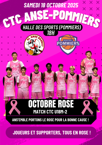 Ce samedi 18h à POMMIERS ,on ressort le rose pour la bonne cause 💗 avec les U18M2 CTC ANSE-POMMIERS🔴🟣